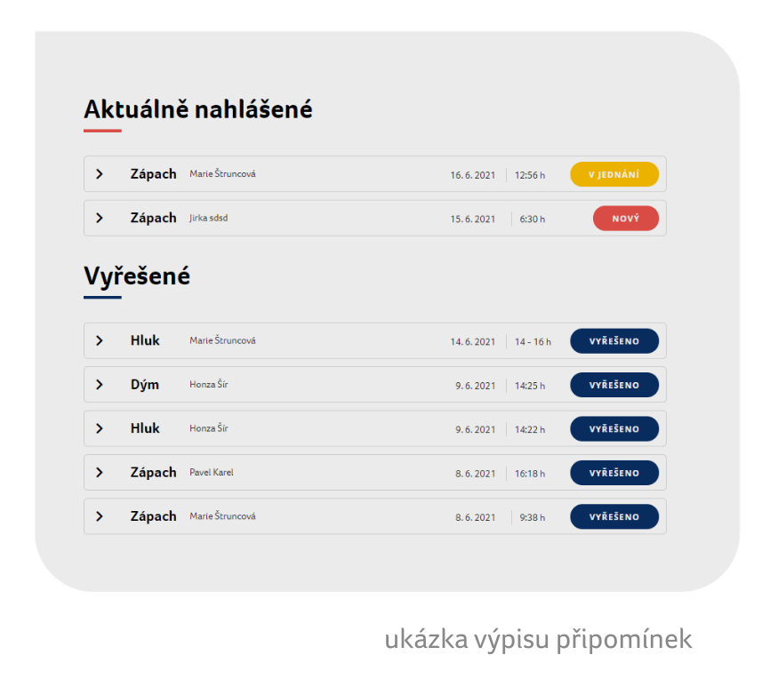 - Nestěžoval si už na hluk, dým či zápach někdo jiný? Než připomínku vložíte, zkontrolujte si ve výpisu, jestli zde neexistuje připomínka podobná té vaší, zaznamenaná v podobný čas. Pokud již někdo problém zaznamenal, pak je velmi pravděpodobné, že se jim již někdo ve společnosti zabývá.